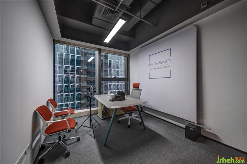 辦公室內(nèi)設(shè)置了一個(gè)展廳的區(qū)域里面陳列著可思美的美容產(chǎn)品,讓品牌與消費(fèi)者有更深層連接辦公室設(shè)計(jì)