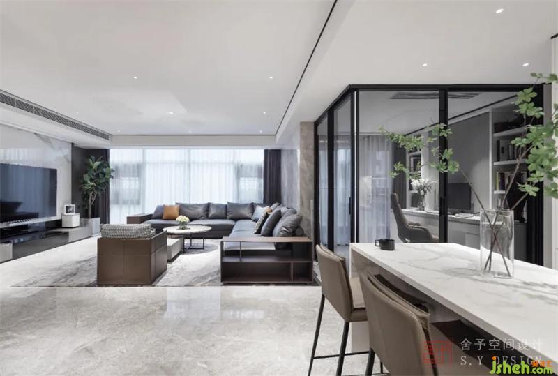 主要材料 | 大理石、實(shí)木板、免漆天然飾面板、黑鈦鋼條 、藝術(shù)涂料、舍予全屋定制
