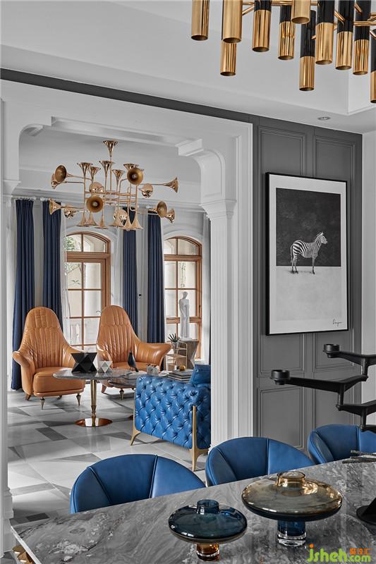 設(shè)計(jì)者認(rèn)為良善的設(shè)計(jì)以人性關(guān)懷為基礎(chǔ),潛移默化地改變著我們?nèi)粘I钆c生活方式,追尋超然意趣,暢快淋漓地,愉悅我們的感官,也愉悅我們的心情,通過(guò)審美的超越性救渡糾纏于世俗利害關(guān)系中的心靈,提升我們的品味。很多時(shí)候,需要引導(dǎo)的是一種生活方式和態(tài)度,而不是局限于某種風(fēng)格…本案設(shè)計(jì)正是恰到好處的將這一理念體現(xiàn)的淋漓盡致。別墅坐落在素有東方威尼斯之稱的江南古城紹興,建筑一共四層(包括閣樓)客廳、餐廳、廚房等公共活動(dòng)區(qū)設(shè)于一層,會(huì)客區(qū)娛樂(lè)區(qū)工作區(qū)在地下層,二層設(shè)三間臥室,三層即為主臥套房衣帽間,附帶中導(dǎo)臺(tái)。700平方米的居住空間功能設(shè)置齊備,為了呈現(xiàn)更為年輕化的配置,使其生活方式和形態(tài)也都更趨向于現(xiàn)代感,空間感受上格外注重通透、自然、舒適、方便。為此,一層將客餐廳、西廚房打通,融為一體,只是通過(guò)對(duì)稱的門洞作為空間分割的界定。地下室活動(dòng)空間,定位為輕工業(yè)風(fēng)格,開(kāi)放式書(shū)房與會(huì)客區(qū)吧臺(tái)健身區(qū)融為一體,形成一個(gè)更歡樂(lè)的娛樂(lè)空間,而相對(duì)獨(dú)立又有關(guān)聯(lián)的影音室增加了一定的私密性和保證享受影音過(guò)程的品質(zhì)。