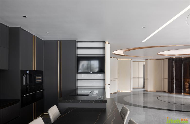 智能與美共存,廚房采用先進的隱形煙機和隱形的升降插座及隔空無線充電裝置。