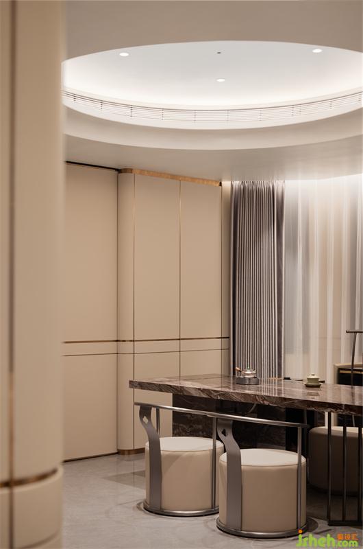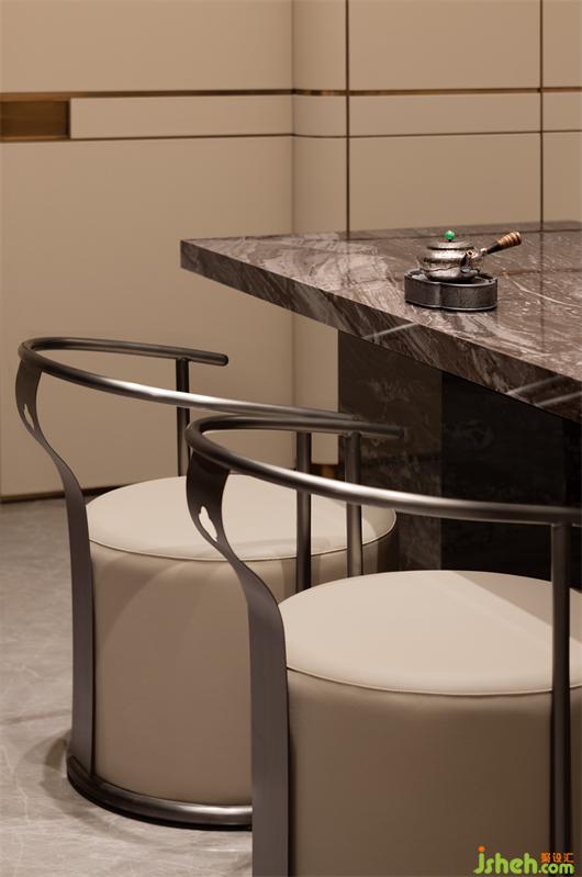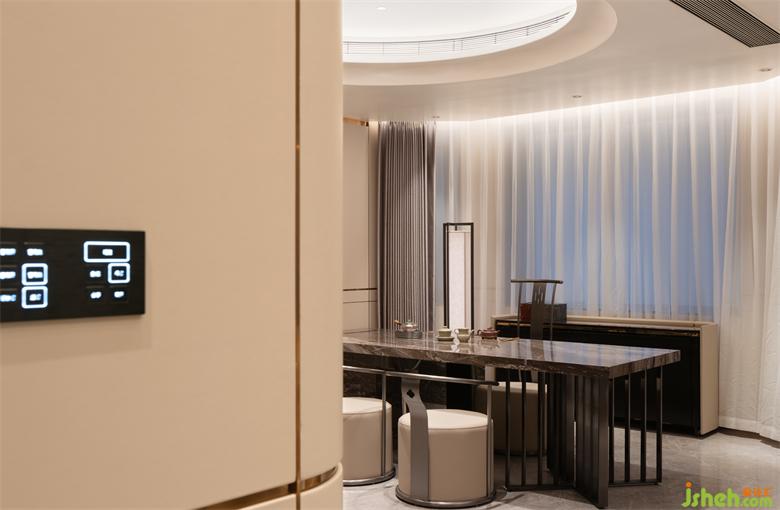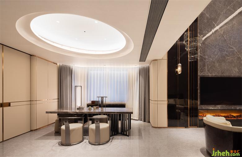 別墅設(shè)計(jì)在公共空間,力求讓不同家庭成員的興趣得到最大的釋放。品茶、會(huì)客抑或是靜思、辦公,不同功能的組合延展了關(guān)于家的塑造與暢想。光的浸染隨著時(shí)間的推移為生活增添了幾分慵懶閑適的注腳。