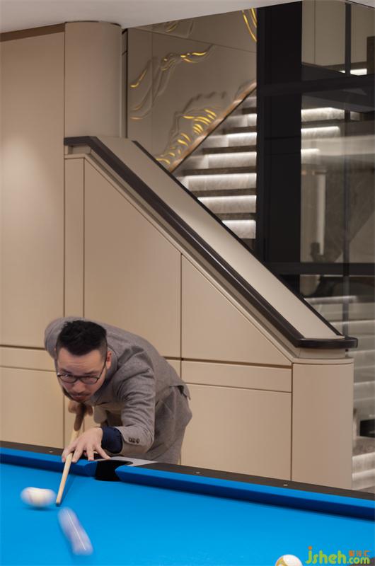 沿藝術(shù)步梯向下,進(jìn)入到以?shī)蕵沸蓍e為主的負(fù)一層空間。