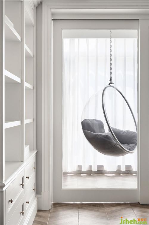 公共區(qū)域大面積使用了灰色進行渲染,我們利用不同的角度、深度來強化各區(qū)域的不同維度,消融并延伸灰階背景的感官邊界。裝修設計空間不僅僅是空間本身,而是人置身其中的情感容器,因此在家私的選擇和軟裝的配置上,我們用自然溫和的療愈色系來襯托出空間的寧靜感。