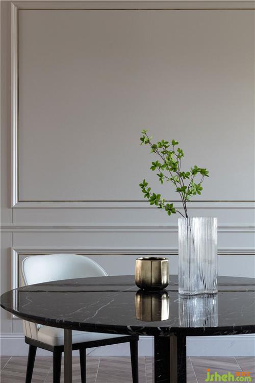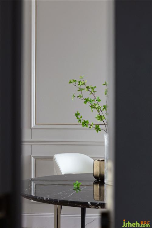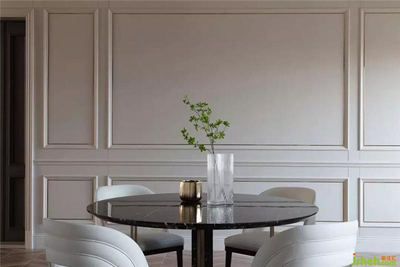住宅空間的尺度感對于擁有舒適的居住體驗而言有著重要的作用,我們跟業(yè)主溝通后將空間進(jìn)行清晰且合理的分布,室內(nèi)設(shè)計師最大化貫通公共區(qū)域,讓公共動線相對自由。同時我們嚴(yán)謹(jǐn)?shù)靥幚斫缑?,簡化古典元素,并以具有現(xiàn)代感的方式呈現(xiàn)出來。