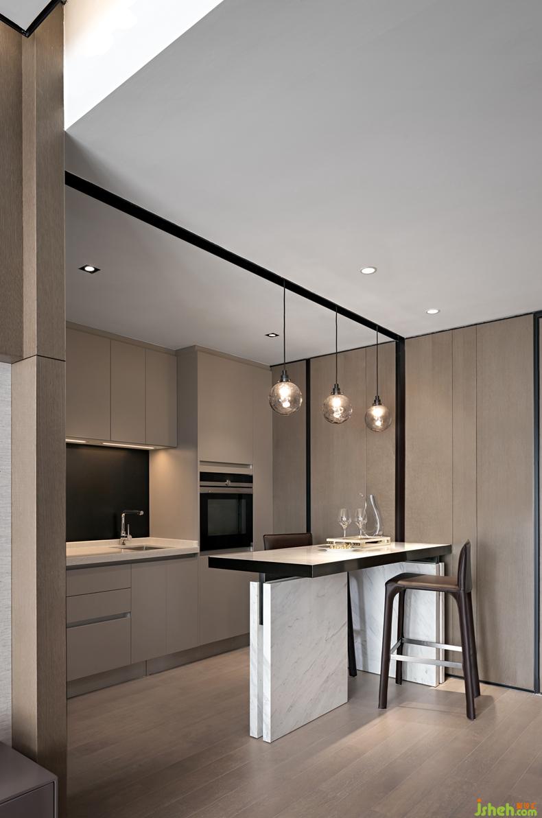 小空間的靈活在餐廳中展現(xiàn)無遺,對坐的吧臺,輕松愜意。氣泡型吊燈剛好照顧到每一餐需要的浪漫氛圍。深圳設(shè)計(jì)公司