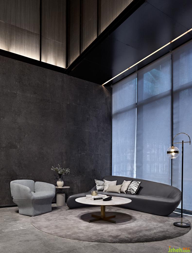 致廣大而盡精微,在小處領(lǐng)略微妙的含義。洽談區(qū)的設(shè)計以簡潔有序的空間布局、清冷簡約的石材、淡雅而節(jié)制的素色沙發(fā),搭配相得益彰,自然的形態(tài)描述出生動的儀式感,所選用意大利Minotti品牌家具,注重舒適度及設(shè)計感的雙重呈現(xiàn)。