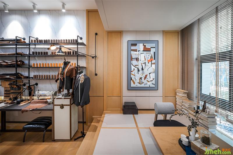 本案樣板房設(shè)計將原木與皮革視作主軸,采用開放設(shè)計,導(dǎo)入全流程沉浸式定制工作區(qū),打造出富有文化沉淀感與復(fù)古情懷的意式工坊主題公寓。這所被馥郁醇香包裹的空間,將是手工愛好者的天堂,亦或是任何一個自由靈魂的歸宿。
