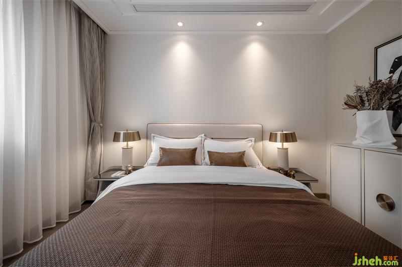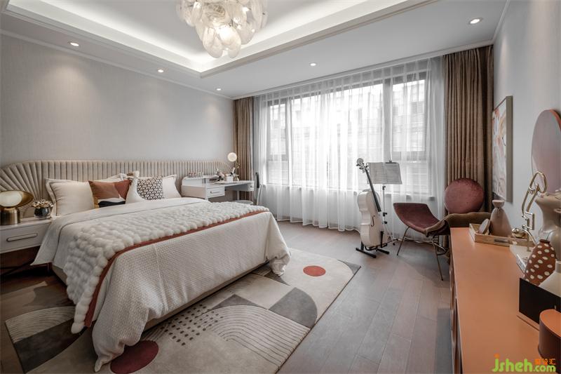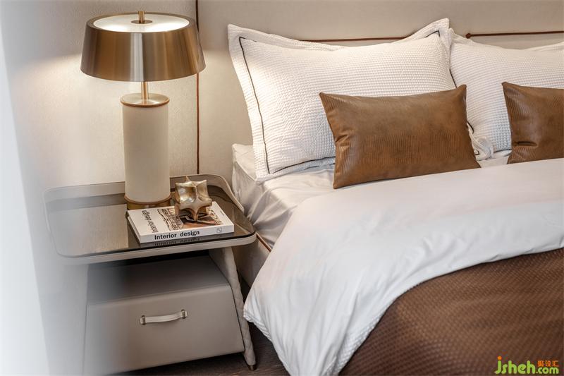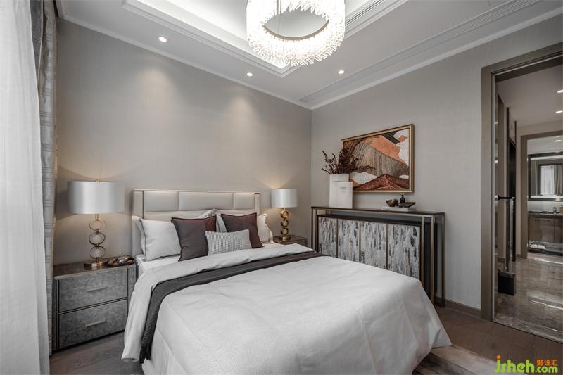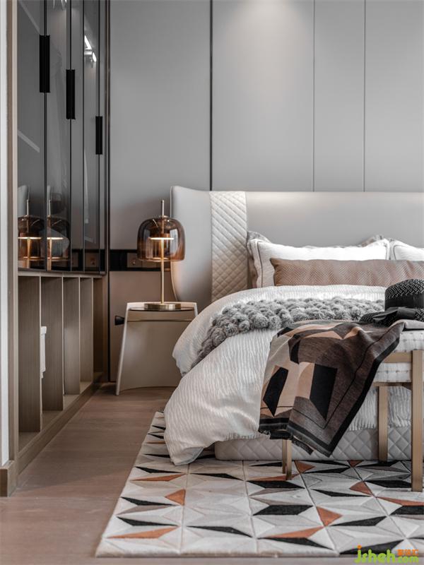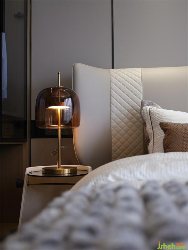 樣板房設計通過對燈光色溫的精準把控,將時光感暈染在床畔?;野咨じ?,搭配菱格肌理時尚優(yōu)雅,床體靠背如展翅的羽翼,大氣造型帶給人滿滿的安定與溫馨。金屬作為輕奢的靈魂之筆在首尾點綴,每一處都彰顯著戶主卓然的生活品味。