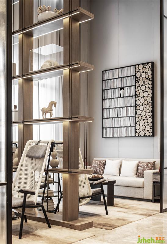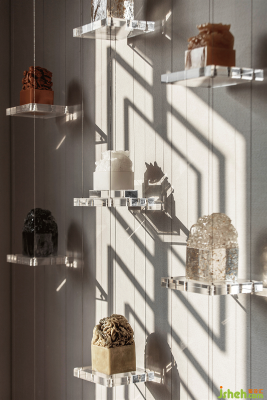 書吧的另側(cè),一組“破繭成材”的獨立藝術(shù)裝置,象征著人們對于知識的專注和渴求。一人一書,一簡成澤,時間、空間、文化,匯聚在思想精神的領(lǐng)域里,所有一切設(shè)計美學(xué)自然而然成為展現(xiàn)“文府甲第”項目氣質(zhì)的形式。