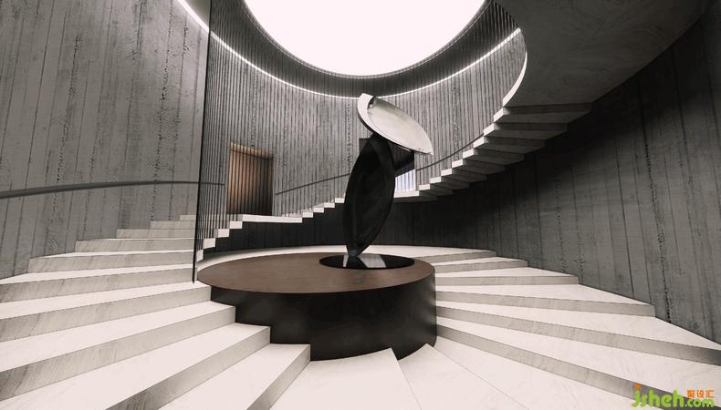 圓筒空間自然獲得了一種向心力,也以一種邀請的姿態(tài)和活潑的情趣,讓人想拾級而上,在游走的過程中,窺探一個個門洞背后的未知可能