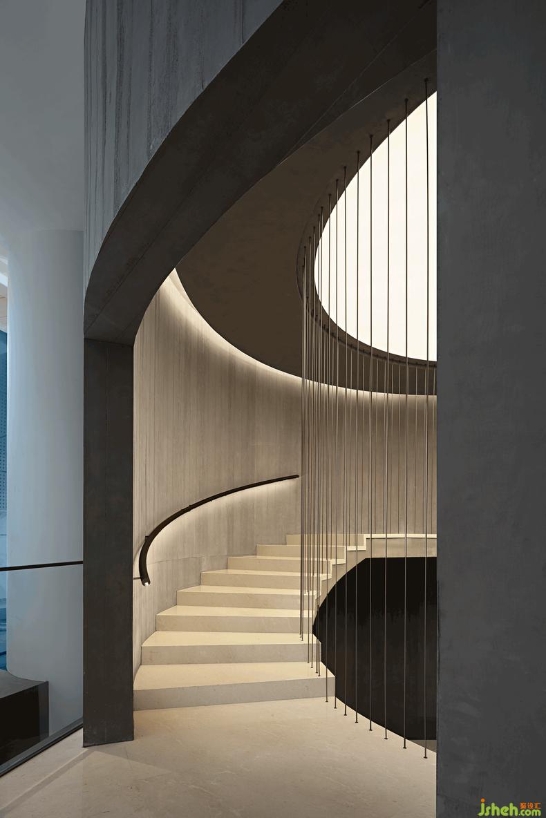 沿二層旋轉(zhuǎn)樓梯盤旋向上,探索清水混凝土圓筒結(jié)構(gòu),可以撫摸到樸素細(xì)膩的建筑構(gòu)成之美。單純卻充滿力量感的材質(zhì)一氣呵成,回歸設(shè)計的初心。
