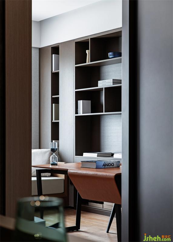 惠州家居設(shè)計將書柜做整體內(nèi)嵌,增大空間利用率,同時立面效果更加平整簡潔。有充足的藏書空間、有舒適的坐榻 、有書臺,提供一個宜人的空間,滿足業(yè)主日常的在家辦公及閱讀休息的功能訴求。