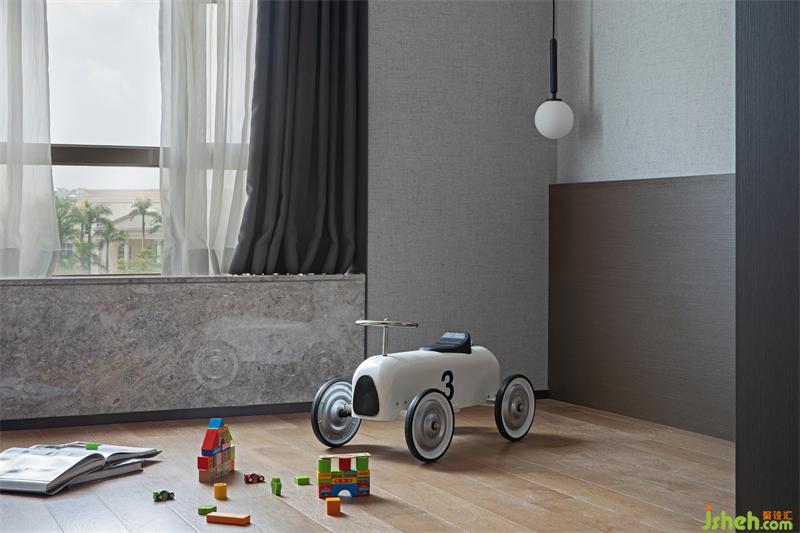 客房因業(yè)主暫不需擺放床品,前期設(shè)置為兒童娛樂室。當(dāng)下每個家庭都非常重視孩子的成長環(huán)境,住宅設(shè)計中通常我們也會留出一定比例的空間提供給小朋友使用。讓孩子們可以有充足的場地去探索世界、健康成長。