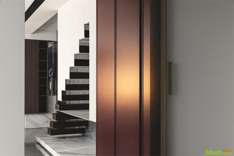樓梯作為設(shè)計(jì)的一大亮點(diǎn)精心打造。木與鋼的微妙結(jié)合,打破原混泥土樓梯的笨重感,同時(shí)后半部分用鋼板作為一個(gè)搭配材質(zhì)和輔助的拉力,家裝設(shè)計(jì)擁有了材質(zhì)視覺(jué)的豐富性,也消除了樓梯在長(zhǎng)久使用下可能帶來(lái)的松弛和變形的顧慮。