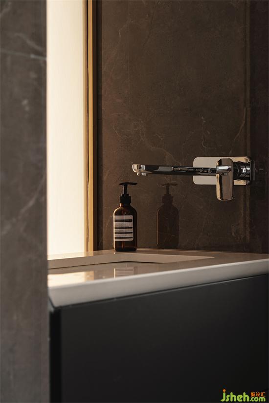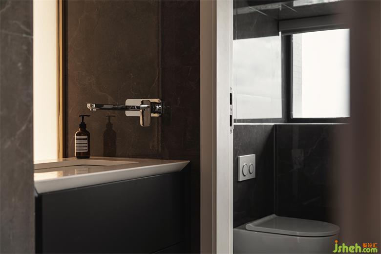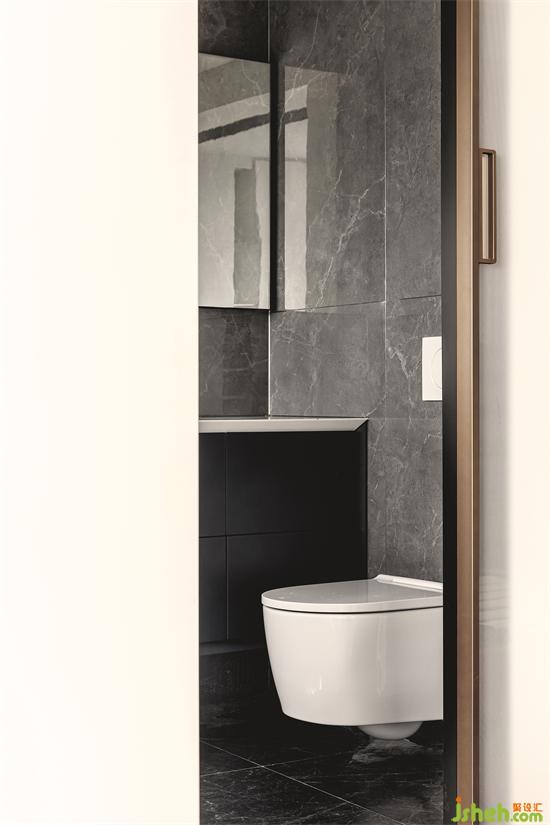 二樓客房衛(wèi)生間壁掛馬桶利用管井位,水箱完全嵌入墻體,保證墻面平整性的同時(shí)視覺效果更為干凈高級。