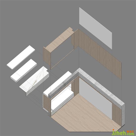 飄窗因?yàn)榻Y(jié)構(gòu)的限制,實(shí)際的利用效果往往并不理想。家裝設(shè)計(jì)主臥飄窗的區(qū)域我們定義為梳妝或收納區(qū),通過造型的疊加與穿插產(chǎn)生結(jié)構(gòu)力量感, 也提高了功能的使用率,激活空間價(jià)值。