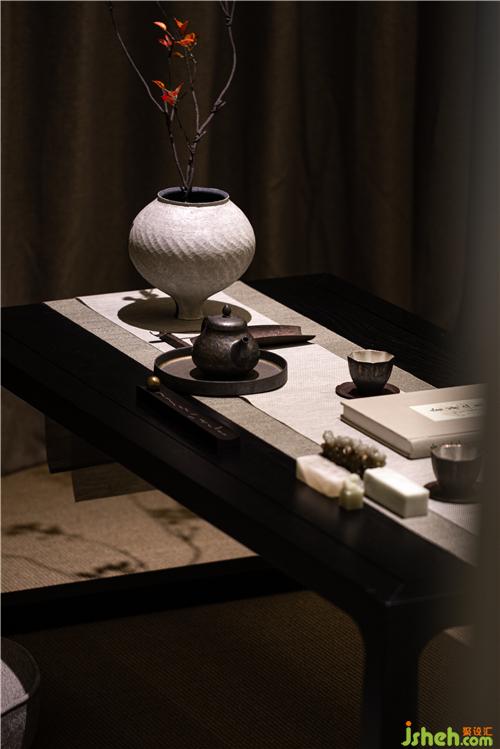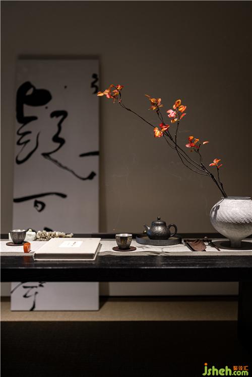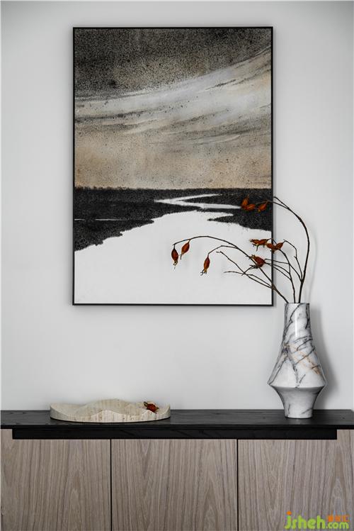 藝術(shù)品則是挑亮整個(gè)室內(nèi)空間的關(guān)鍵。設(shè)計(jì)師特意選擇了富于東方精神的抽象作品,沒有具象畫面的闡釋,抽象的圖畫反而營(yíng)造出更大的想象空間,一個(gè)桃花源或許正是在這個(gè)空間里誕生了。而這種藝術(shù)性也蔓延到了空間中的花藝設(shè)計(jì)和香氛氣息中。其中花藝師用植物當(dāng)作詞匯,在空間里講故事。而室內(nèi)選用的香薰都和調(diào)香師的旅行記憶相連通,美妙的氣息帶人徐徐進(jìn)入一個(gè)溫暖的夢(mèng)境——在那里,時(shí)間不老、情感常新。