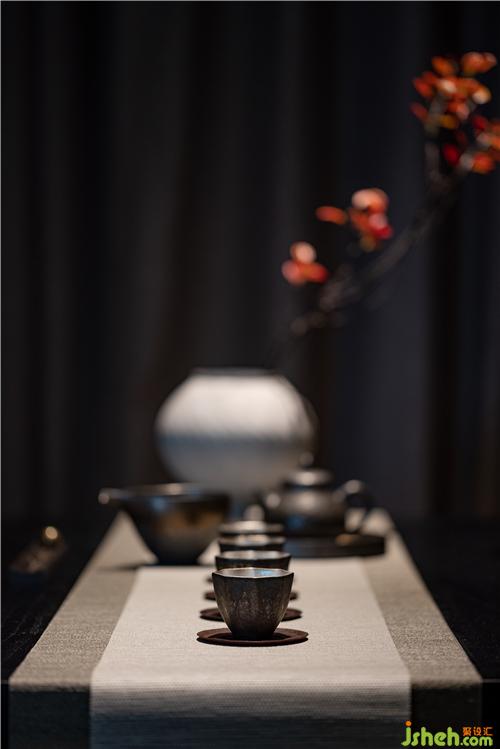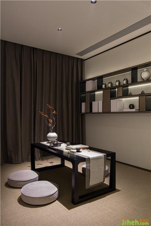 而家中的茶室則正是靜心養(yǎng)神的最佳場(chǎng)所。設(shè)計(jì)師在此選擇了沉靜而略帶暖意的色彩,樣板房設(shè)計(jì)并通過(guò)線條簡(jiǎn)潔的家具來(lái)妥帖安排了功能。深色木質(zhì)茶桌搭配低坐姿的團(tuán)墊有種溫和的踏實(shí)感。于是,只在這一方茶空間中,讓我們一起來(lái)享受一杯茶的時(shí)間,白日的煩擾就這樣被過(guò)濾成身心的自由。