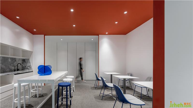 設計延續(xù)了活力的紅色與冷靜的藍色色塊,以色彩渲染間接影響員工的工作情緒與場景需求,在這樣的空間中人與空間的狀態(tài)是靈活的,多變的。設計認為只有真正地將空間與人的需求結合起來,改進或重新配置辦公空間, 才能滿足員工對工作環(huán)境不斷轉變的需求,進一步提升企業(yè)的創(chuàng)新力和抗逆力。