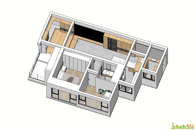 3.客廳缺少收納和手辦展示柜體,書房利用率較低且阻隔客廳光線,希望空間更加開放更可變有彈性。