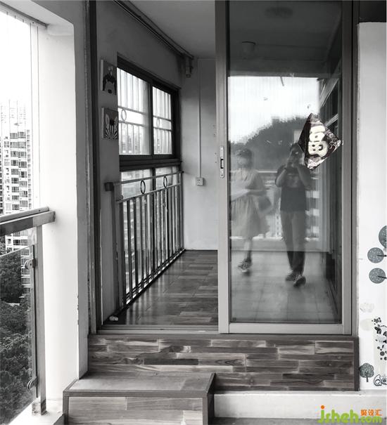 4.拆除衛(wèi)生間和次臥之間的隔墻,用玻璃隔斷代替,增加了透光性。
