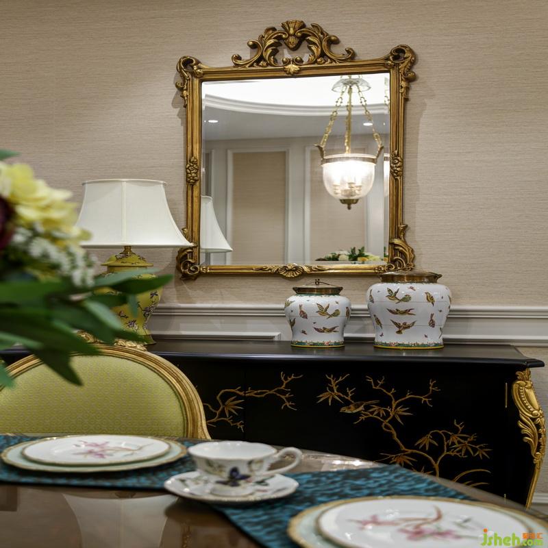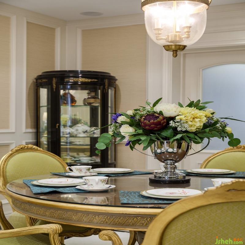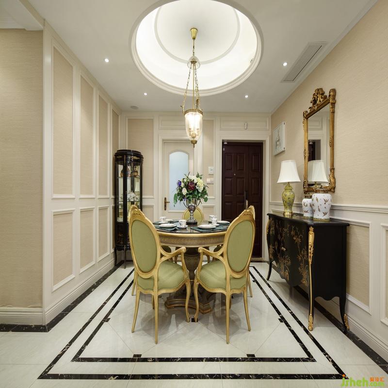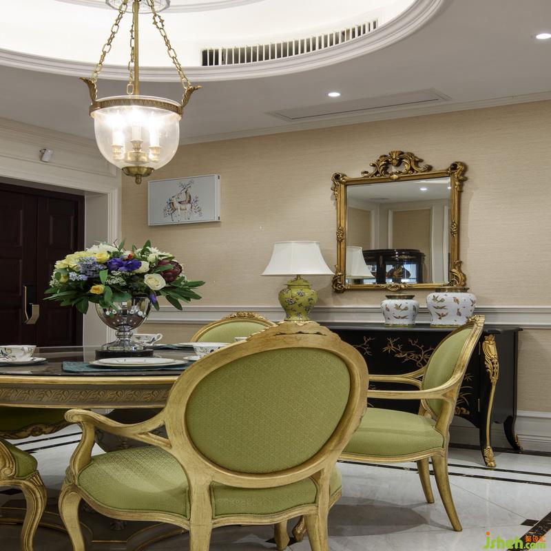 餐廳與客廳統(tǒng)一氛圍,延續(xù)美式的風(fēng)格,室內(nèi)設(shè)計(jì)師利用了簡(jiǎn)約的手法和材質(zhì)還原古典氣質(zhì),搭配上造型別致的吊燈,營造出美式的舒適與溫馨。