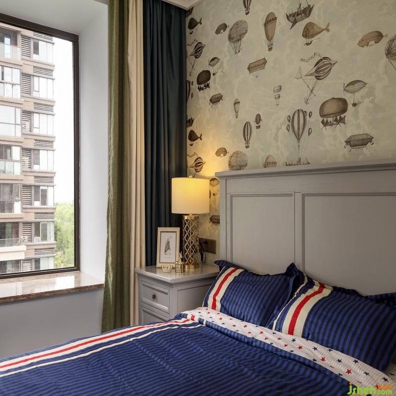 兒童房的設(shè)計(jì)簡約卻不失童真,滿布天空的熱氣球激發(fā)著小朋友無限的想象熱情,室內(nèi)設(shè)計(jì)師精心挑選的深藍(lán)色床品是溫馨的甜夢海洋。拉上三色漸變窗簾,便是父母在舒服的窩在床上給小家伙講睡覺前故事的美好夜晚。