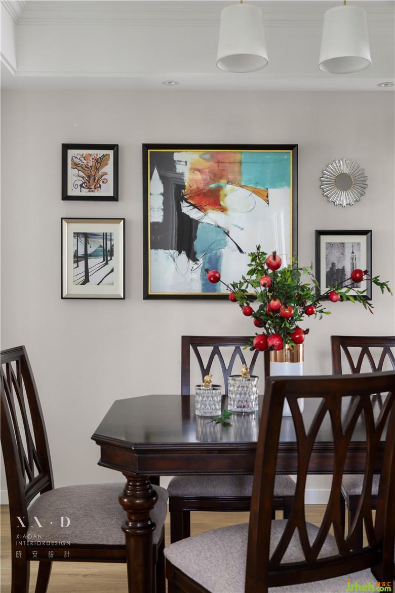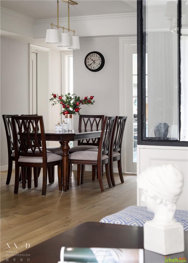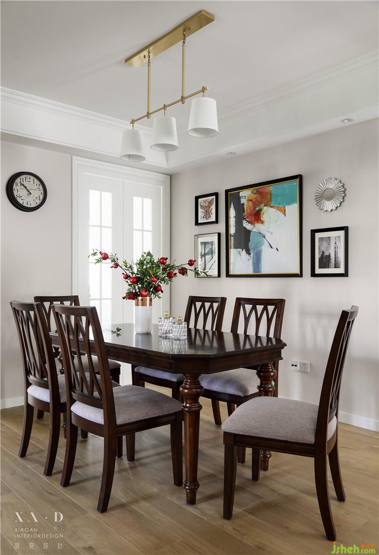 用簡單的材質(zhì)搭配舒適的家。餐廳背景并沒有做多少多余的裝飾,在有限的空間里,兼顧了美觀性和實(shí)用性。