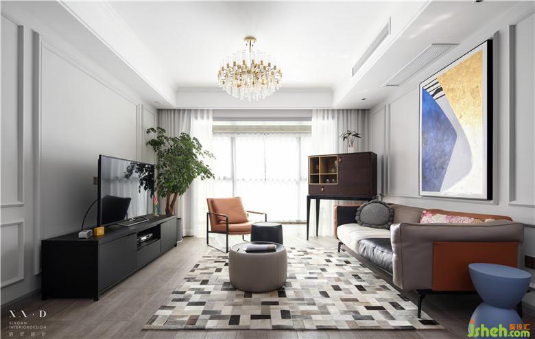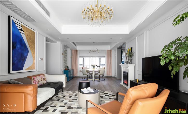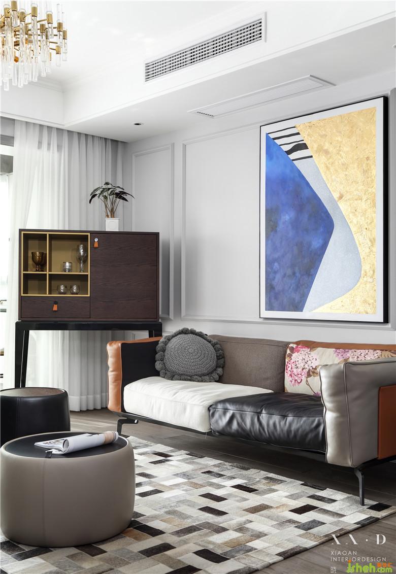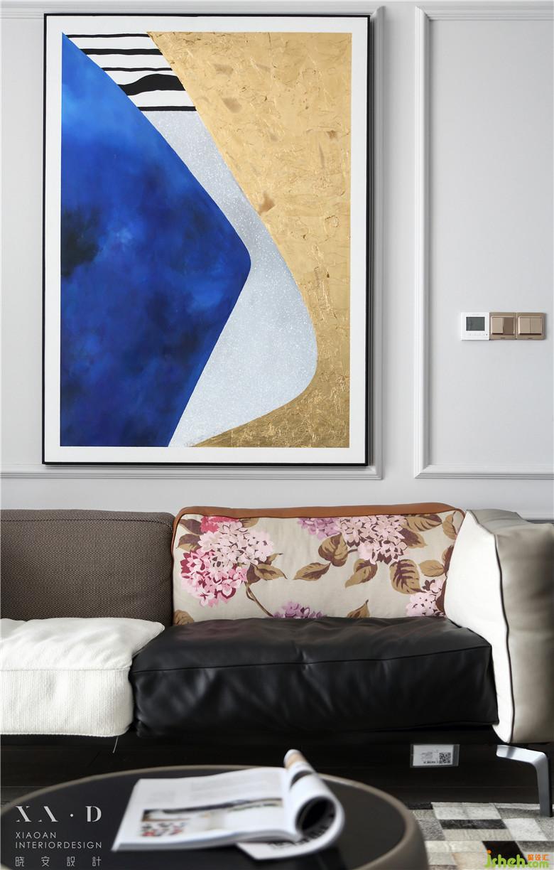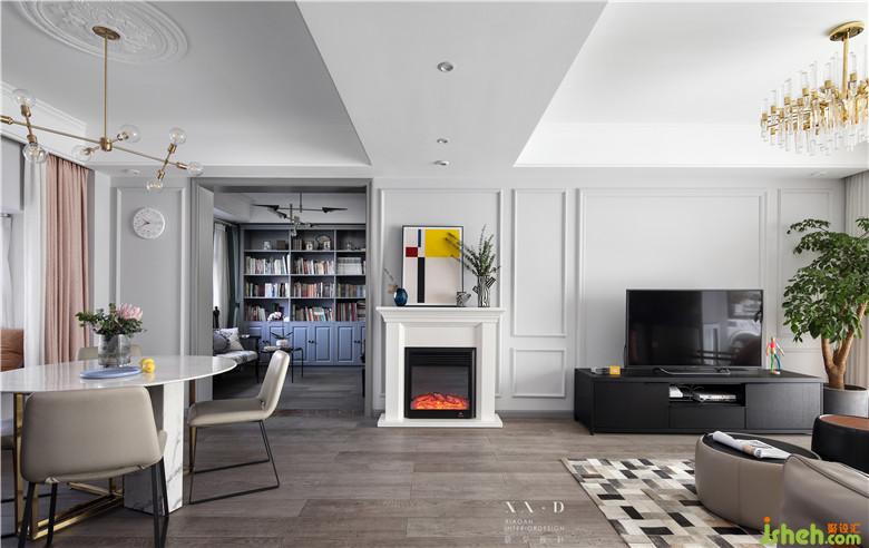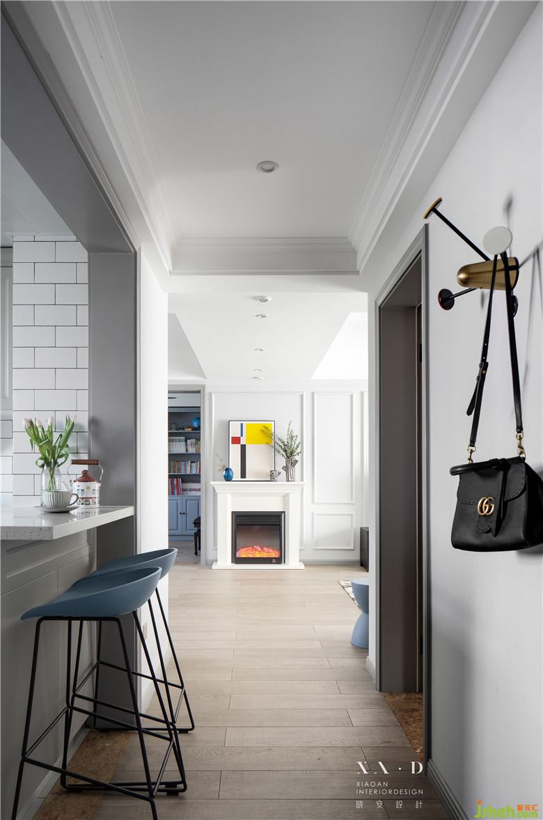 因?yàn)榘研P(guān)端景的墻體拆除,從風(fēng)水學(xué)角度來(lái)說(shuō)需要有一個(gè)端景作為一個(gè)入戶(hù)的玄關(guān),室內(nèi)設(shè)計(jì)師把原有的過(guò)道端口封掉,保證了電視背景墻整體性。玄關(guān)端景處安置的裝飾性壁爐,配上定制的裝飾畫(huà),一進(jìn)門(mén)就會(huì)有一種視覺(jué)的沖擊力。