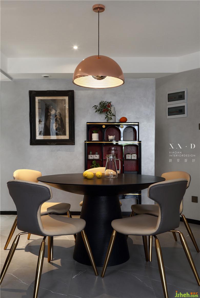 室內(nèi)設(shè)計(jì)師將主臥室的門洞開到餐廳和客廳的中間,確??蛷d的沙發(fā)背景墻長(zhǎng)度,也和墻面電視墻也能正對(duì)上。