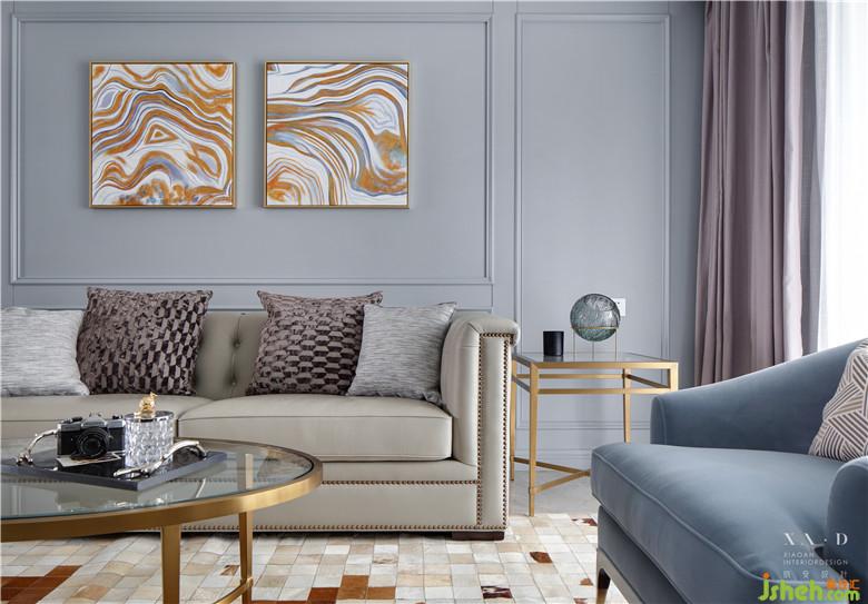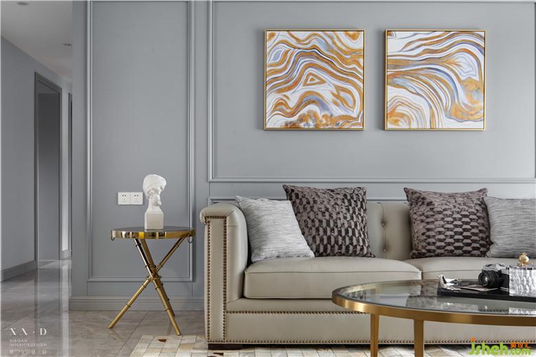 客廳中性而低奢的黃銅點(diǎn)綴于備受青睞的高級(jí)灰空間中,使得整體空間寧靜而又高雅。