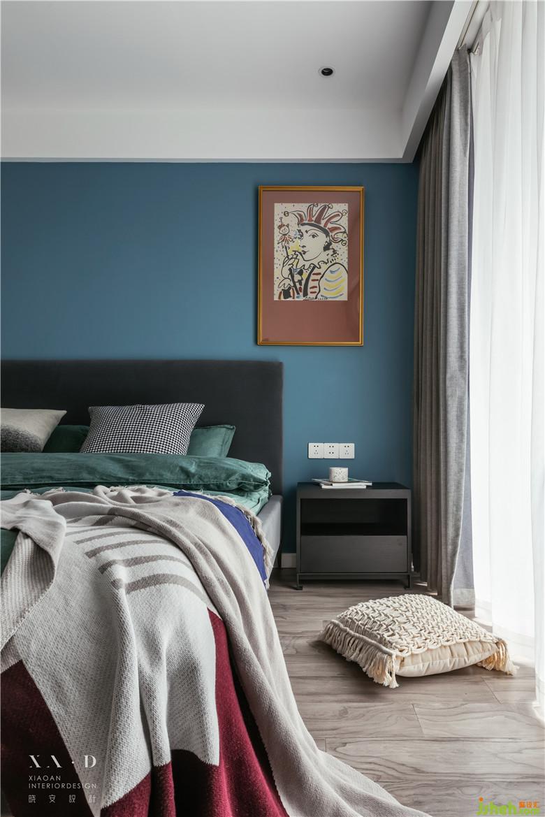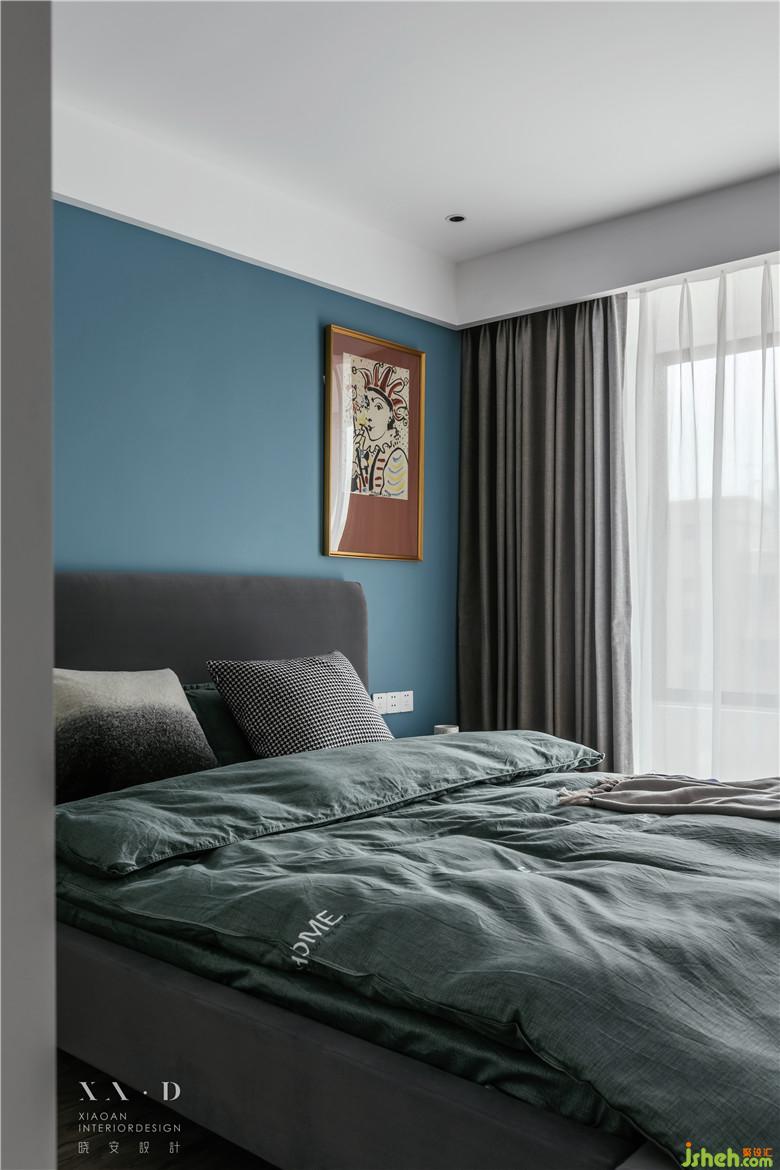 沿用客餐廳的藍(lán)灰色,作為整個空間的點(diǎn)綴色,用灰色的飾品和窗簾組合,層次感、精致感并存。