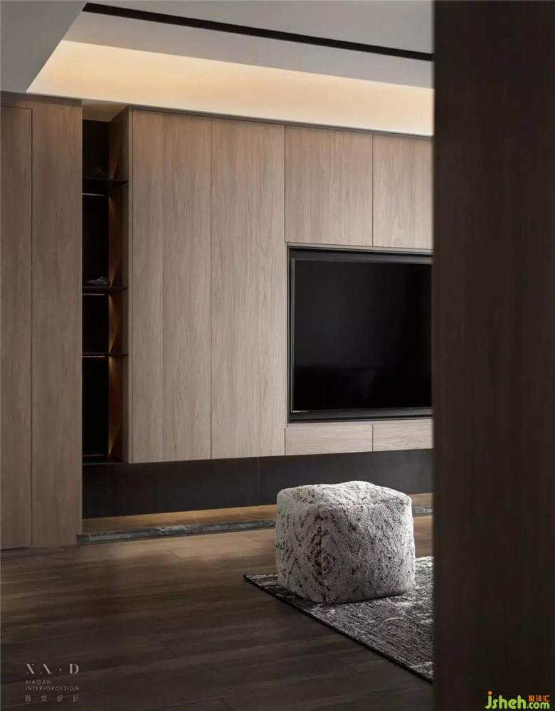 在空間結構的限制下,轉化動靜區(qū)的功能。延續(xù)元素整合房門及收納的柜體,同時通過材質的區(qū)分讓空間相互穿透并保持一定的界限,強化場域間層次的變化,讓居住者和空間有個本質傳達。