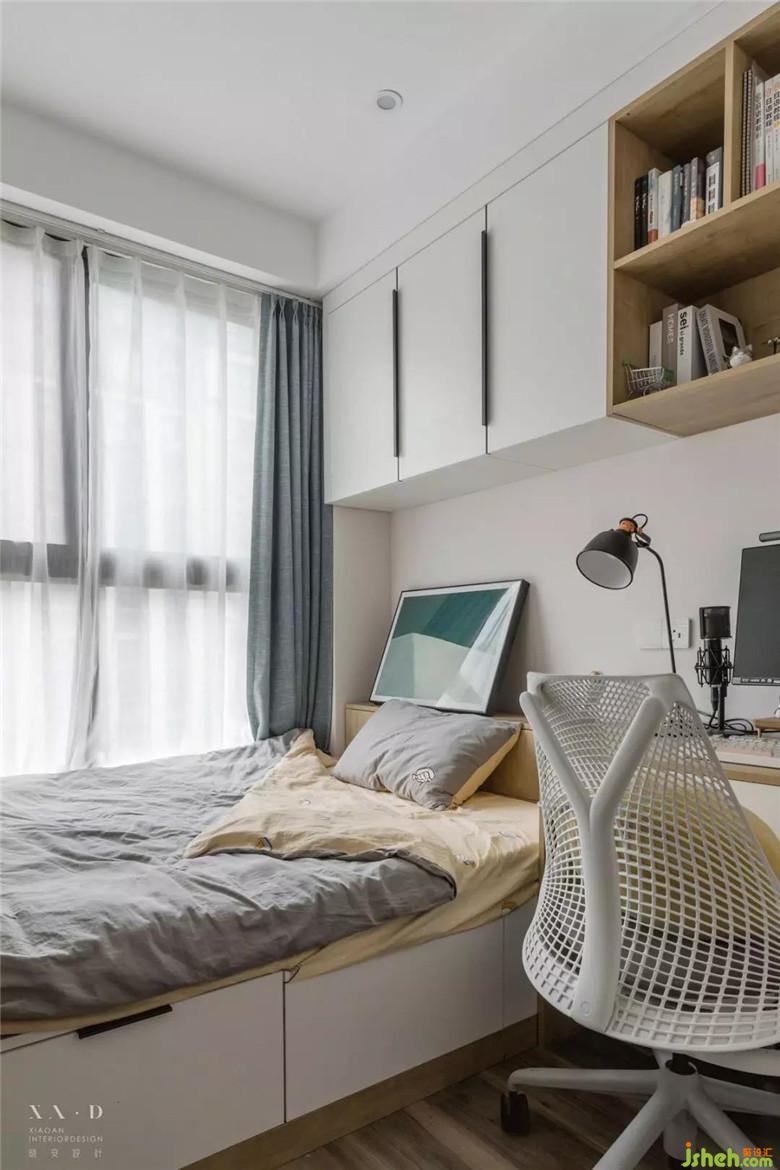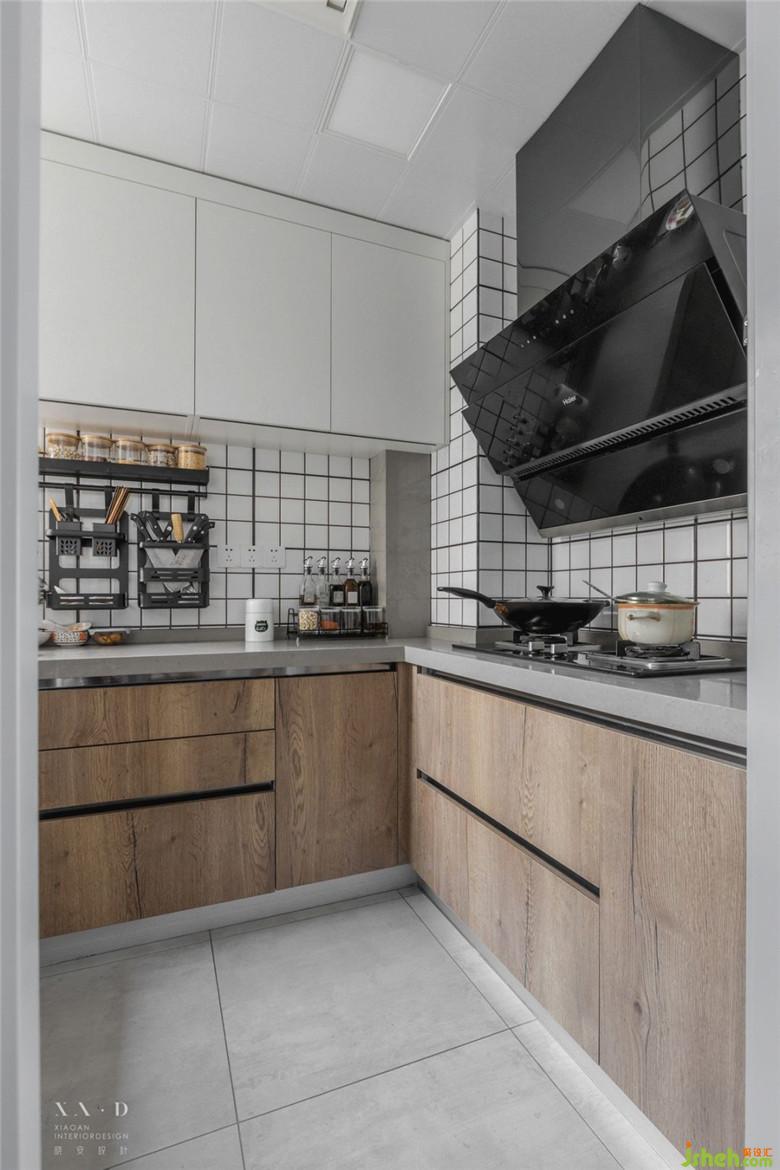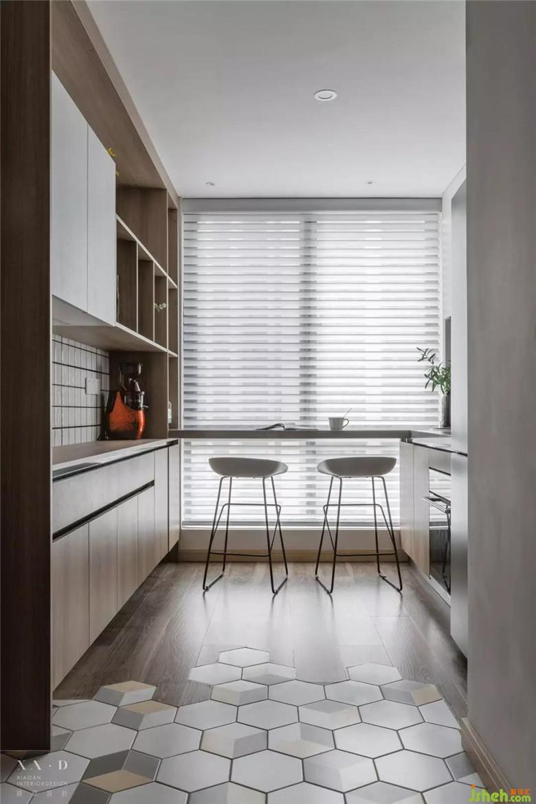 擯棄了北向書房的設(shè)定,室內(nèi)設(shè)計(jì)師將其打通后形成南北通透的空間,增加了西廚和大量?jī)?chǔ)物柜的功能,緩解廚房?jī)?chǔ)物壓力的同時(shí),也解決了進(jìn)門鞋柜的問(wèn)題。
