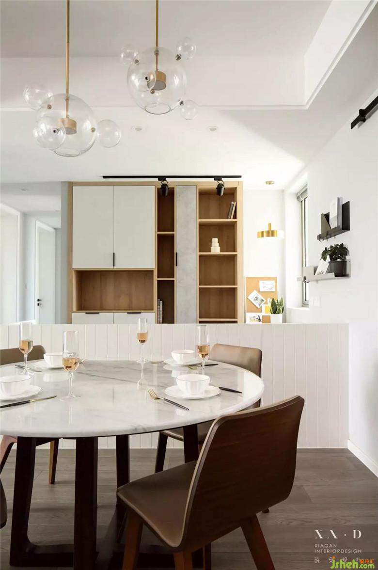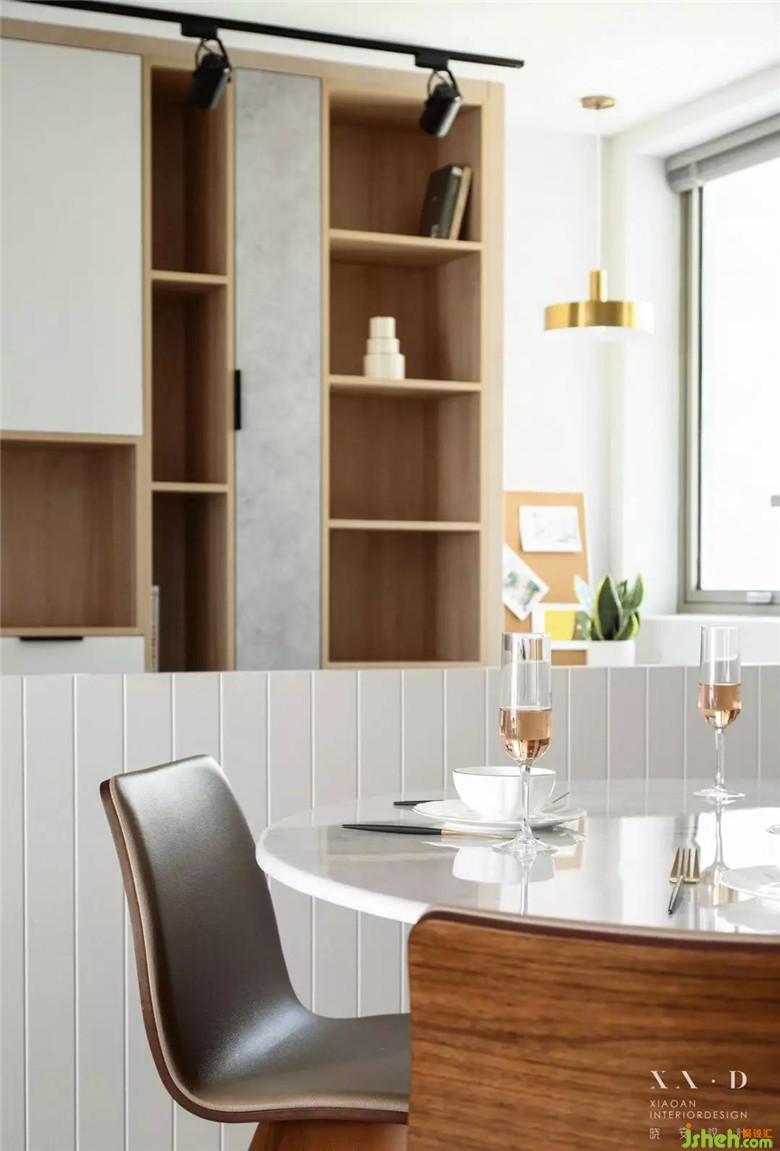 原本的餐廳空間利用率不是很高,所以室內(nèi)設(shè)計(jì)師在原餐廳空間增加了現(xiàn)在所需要的書(shū)房功能,開(kāi)放式的書(shū)房,增加家人之間的互動(dòng)。