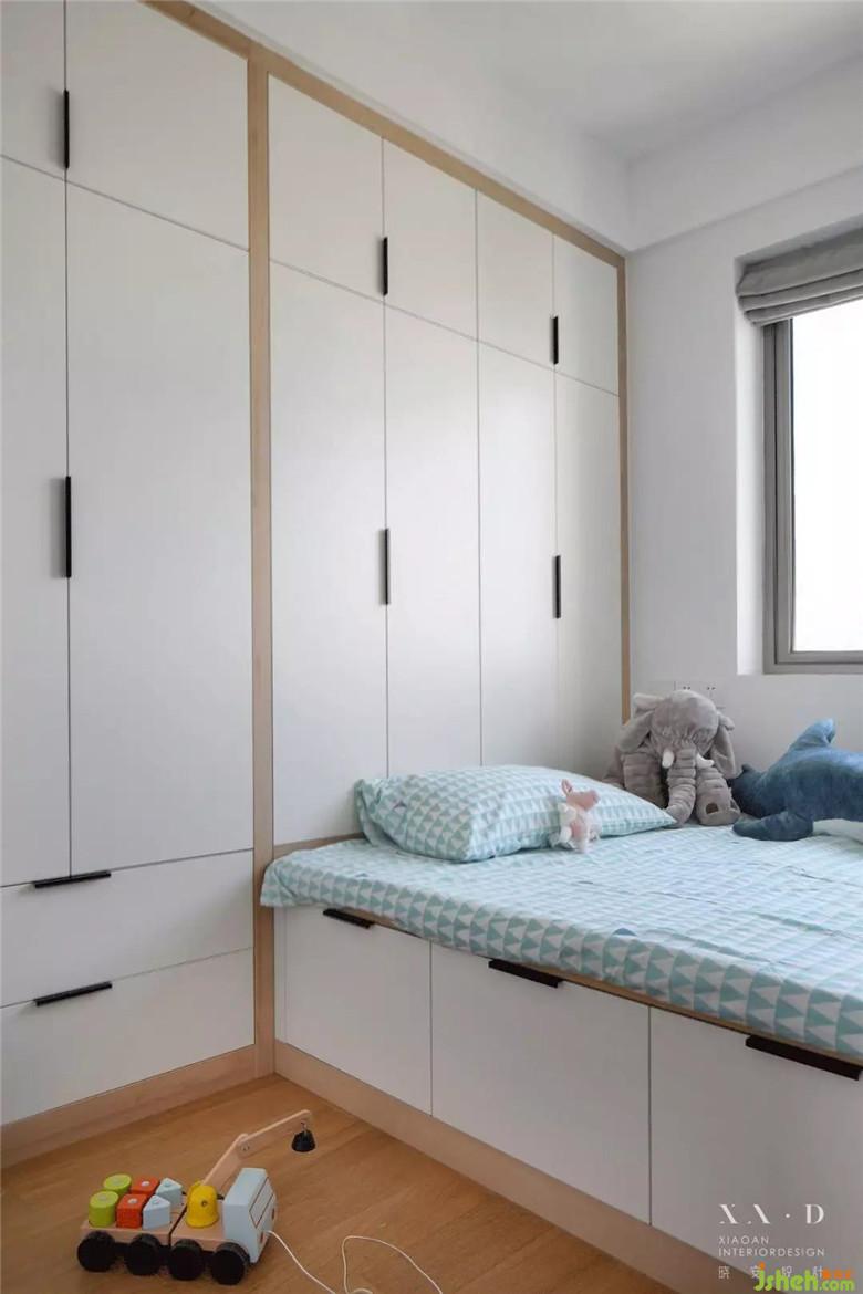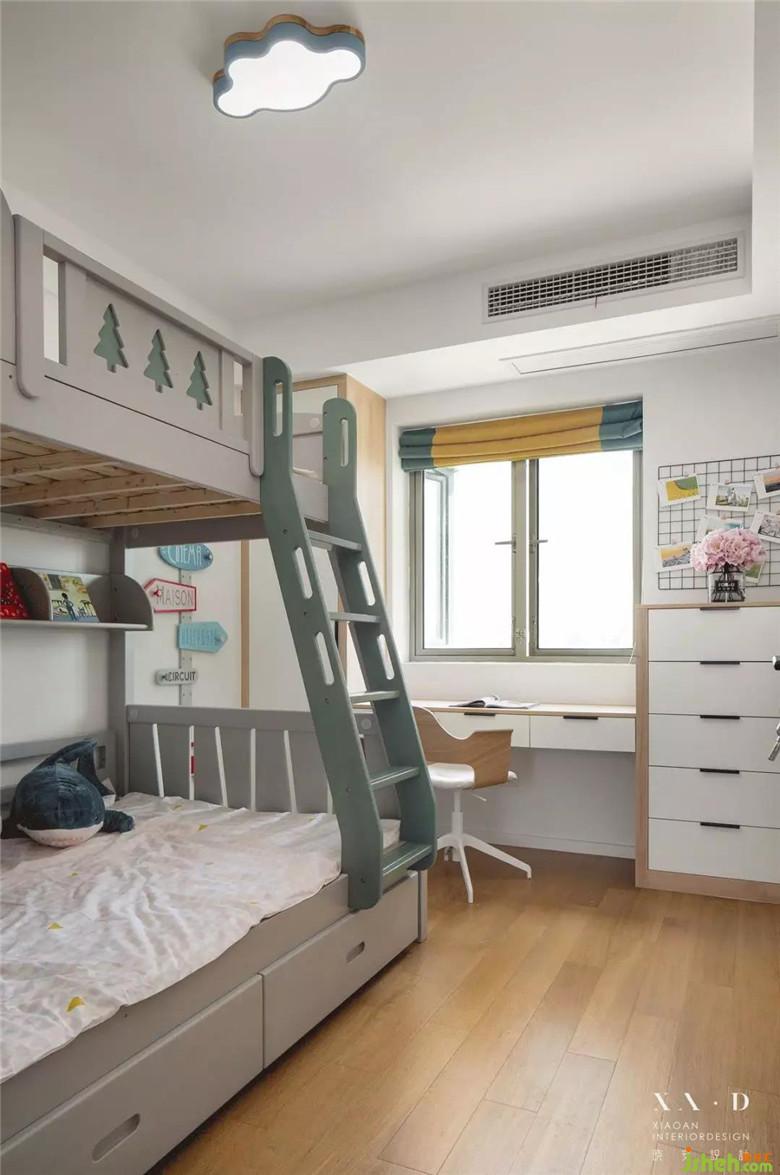 兒童房設(shè)計了上下鋪,因為兩個寶寶還小,所以上下鋪是最好的選擇,使得兩個孩子有更多的接觸時間,增加彼此的感情。