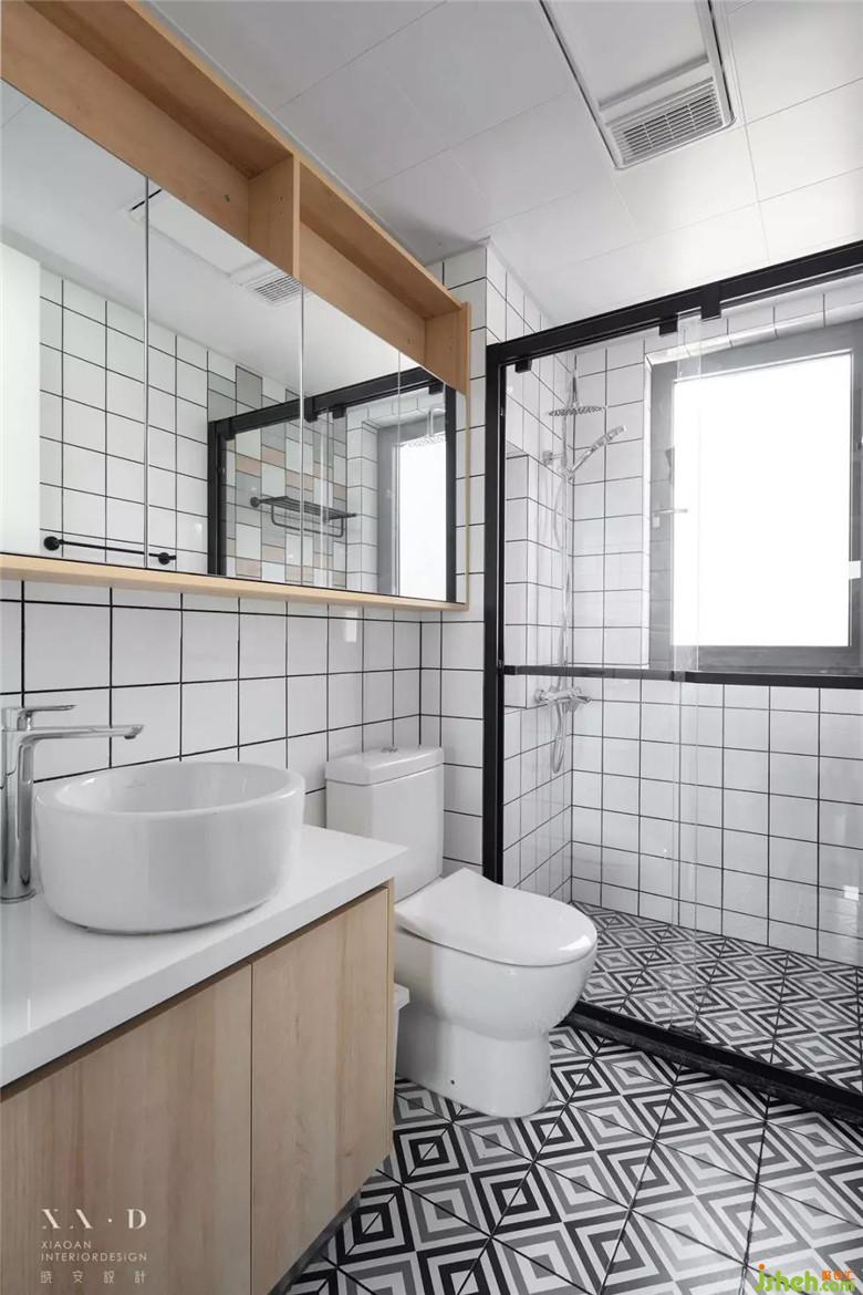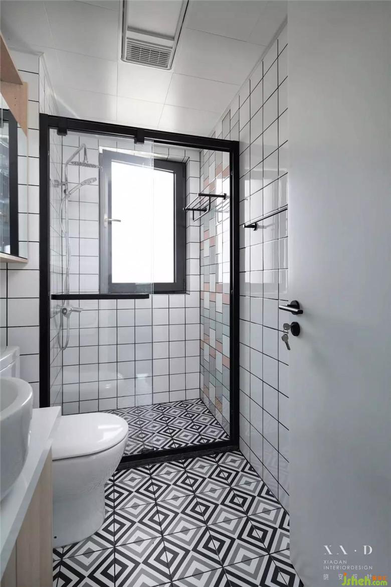 廚房的門選用了比較有意思的門型,谷倉門,一是可以用平移的方式又不占用廚房和餐廳的開門空間,二是可以起到裝飾性的效果。谷倉門選用格子玻璃,這樣有效利用了原本廚房的采光。