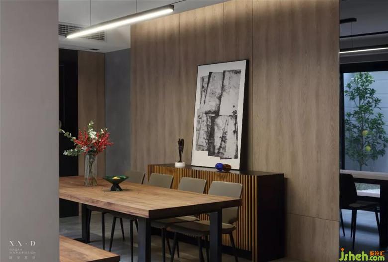 廚房與餐廳的吧臺相連,呈開放式的結(jié)構(gòu),不僅從視覺上放大空間,同時讓廚房散發(fā)的煙火氣息蔓延整個餐廳。