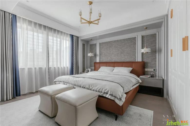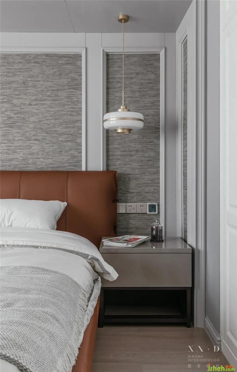 ▲ 暖棕色的床頭裝修公司為臥室內(nèi)增添了令人安心的色調(diào)。