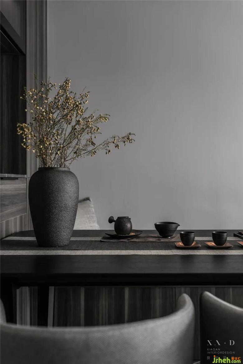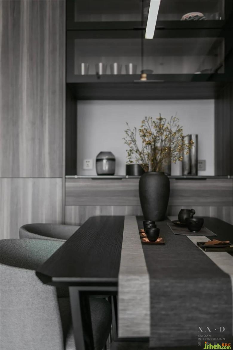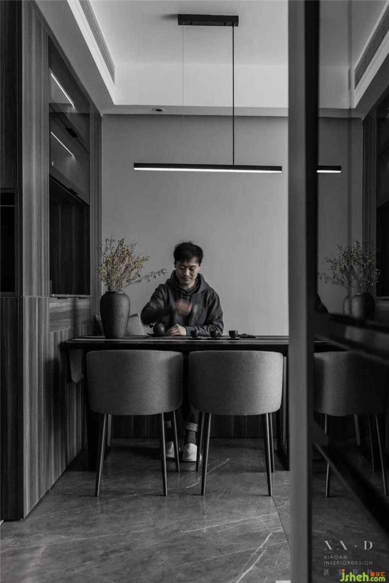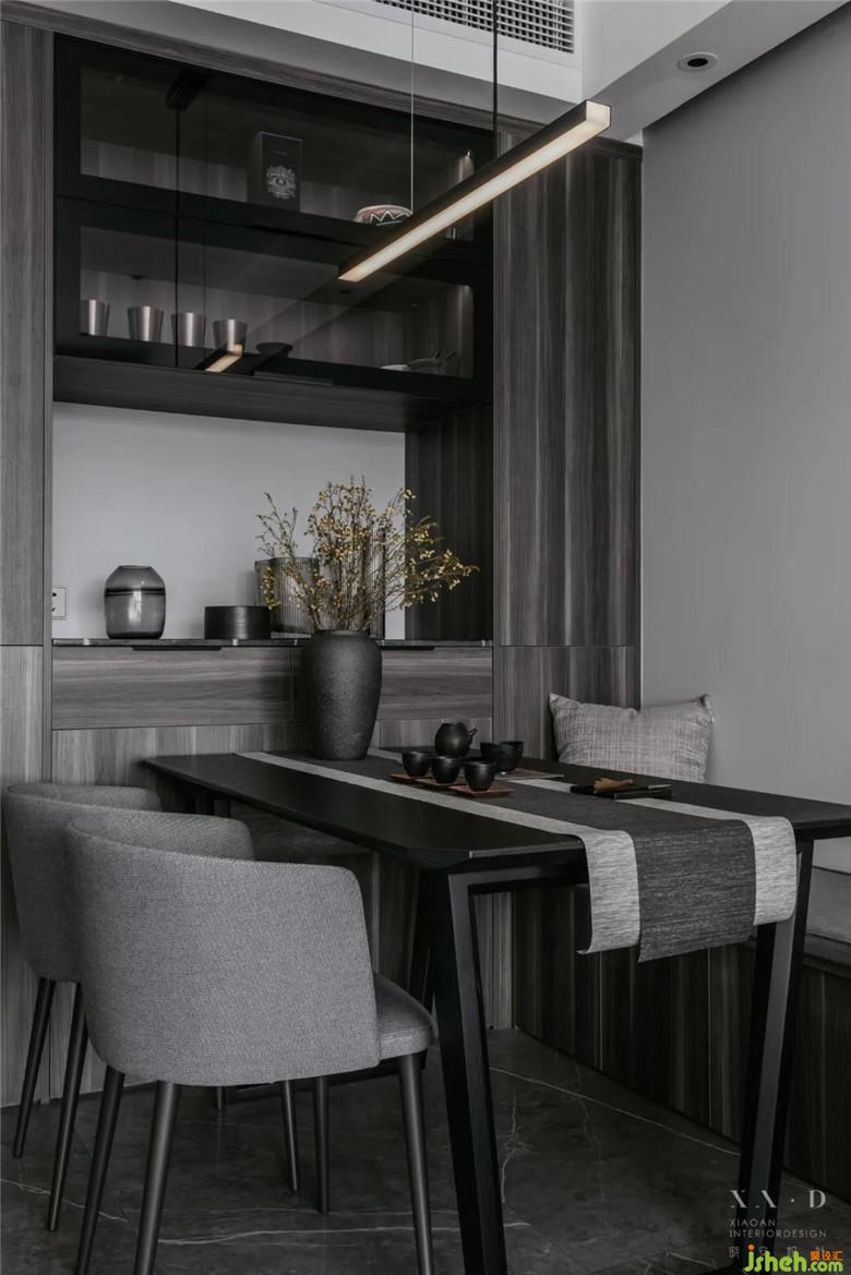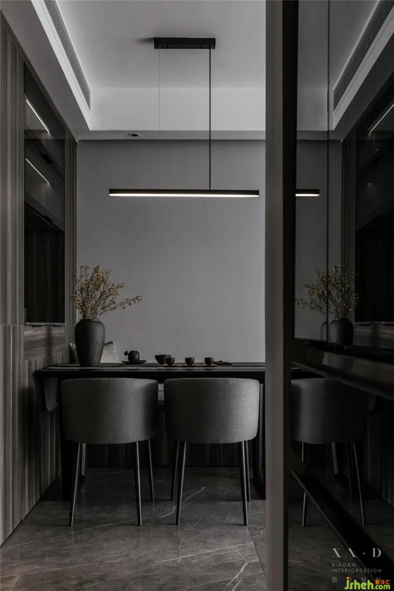 ▲ 裝修公司將黑灰色系大量運(yùn)用到餐桌空間,讓這片區(qū)域變得低調(diào)又沉靜。