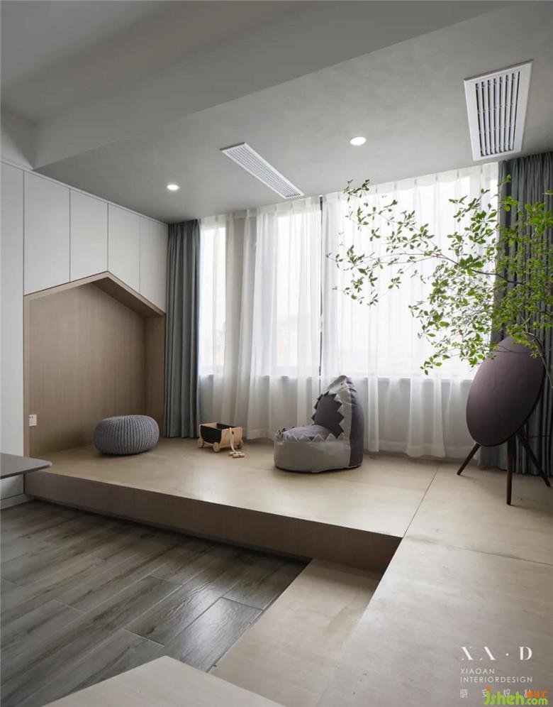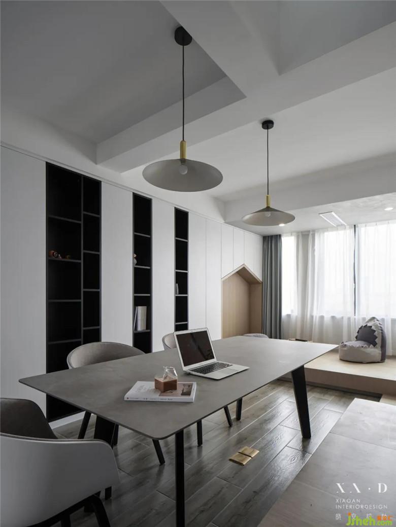 我們家設(shè)計(jì)的最主要的亮點(diǎn)在客餐廳,因?yàn)槲覀兎驄D都是老師,所以根據(jù)我們的需求和生活習(xí)慣,裝修公司設(shè)計(jì)師在一樓空間沒(méi)有放置沙發(fā),將原有的客餐廳用書(shū)桌、書(shū)柜以及地臺(tái)與榻結(jié)合形成的樓梯代替了,這樣我們的孩子在地臺(tái)玩耍的時(shí)候,我們就可以一邊工作一邊照顧他。