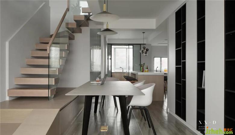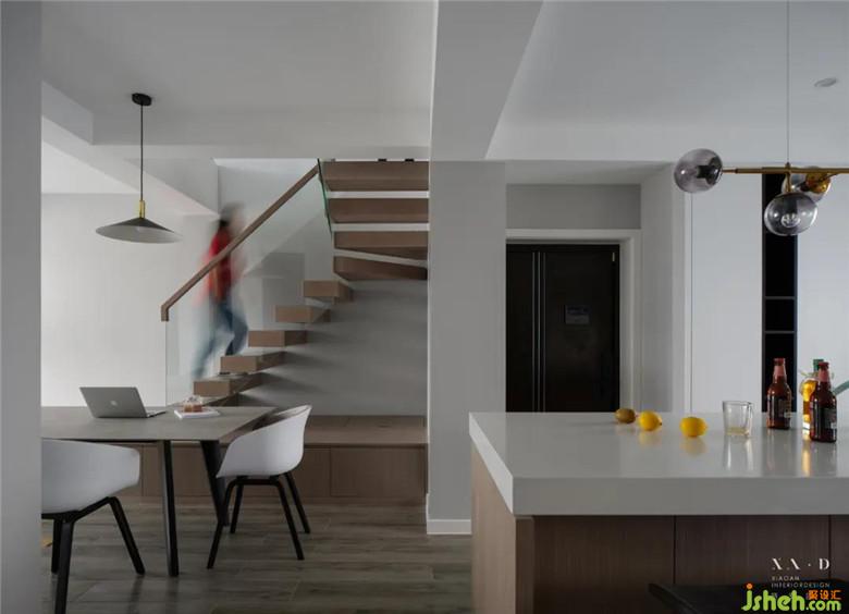 裝修公司將樓梯的末端進(jìn)行“轉(zhuǎn)向”處理,順著轉(zhuǎn)向衍生而出的臺(tái)階,又自然而然地成為了“卡座”。樓梯、踏步、卡座、地臺(tái),四位一體,讓生活多了無(wú)限樂趣。借勢(shì)創(chuàng)新,激趣生活,為家居生活打造別具趣味的空間造型,樓梯功能在設(shè)計(jì)中被無(wú)限地多樣化。
