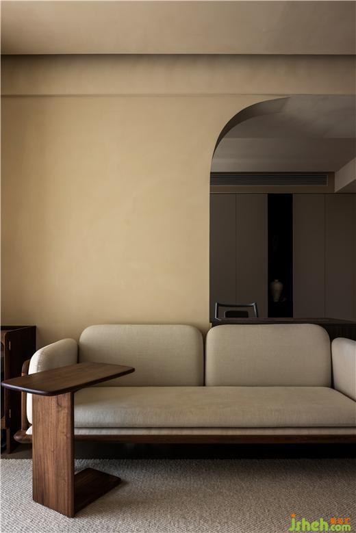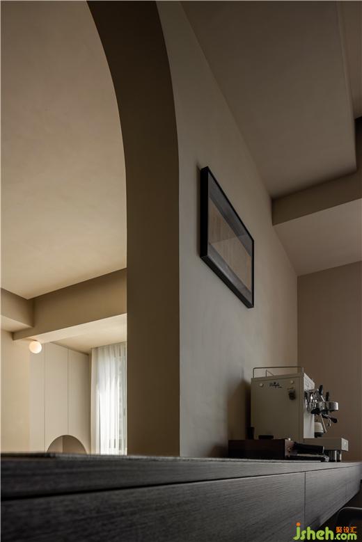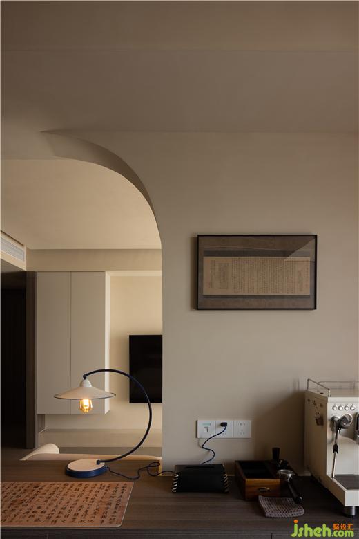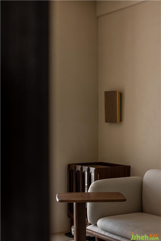 飽含天然條紋的飾面,從玄關(guān)流轉(zhuǎn)至?xí)?,賦予空間多維的溫馨感,借其素雅基調(diào)貫通可見的書法作品與不可見的思想高度。運河與岸裝修設(shè)計以統(tǒng)一色調(diào)隱藏收納空間,凹嵌結(jié)構(gòu)則行造境之用。優(yōu)雅簡約的陳設(shè),將書房情態(tài)拉回當(dāng)下,闡述著生活的厚度。
