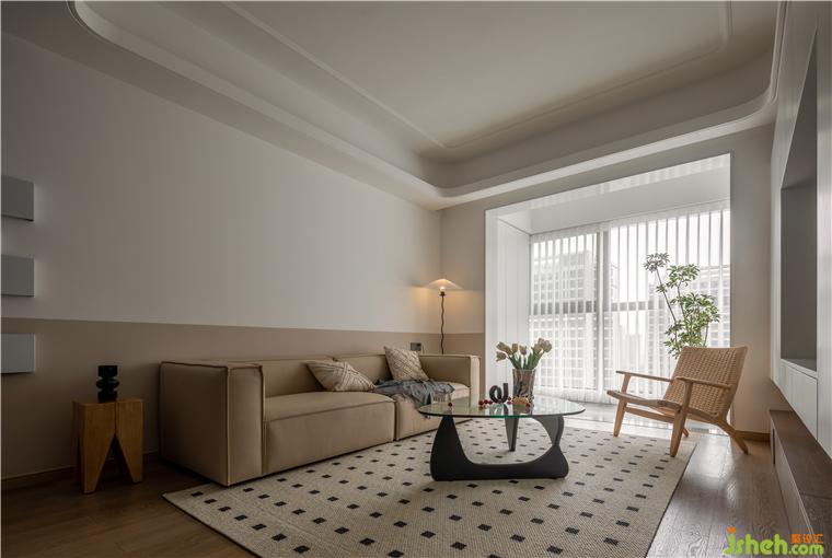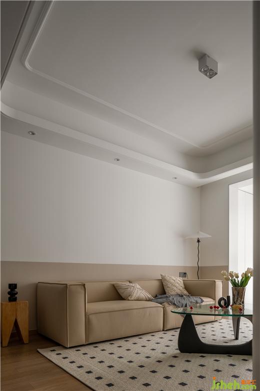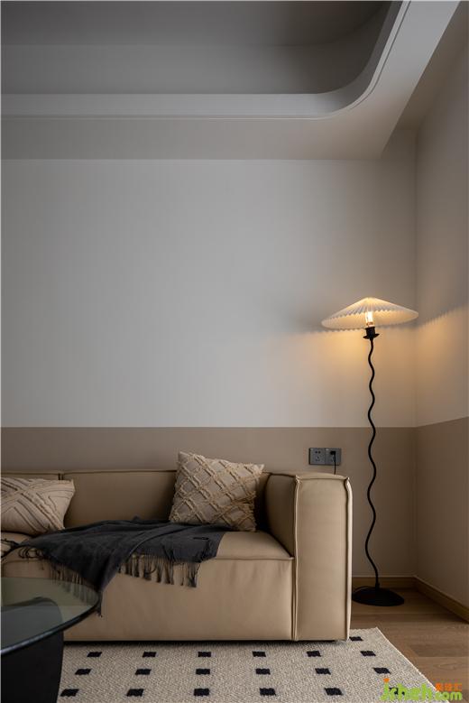 沙發(fā)、背景墻、電視柜的顏色相近,依靠色彩的延伸,醞釀出醇、靜的視感,喚醒了內(nèi)心對(duì)溫馨的感知力。美的云筑家裝設(shè)計(jì)自帶鏤空的邊幾,消弭了大體塊沙發(fā)的笨重感,攜手波浪身形的落地?zé)簦尶臻g多了些視覺(jué)層次。