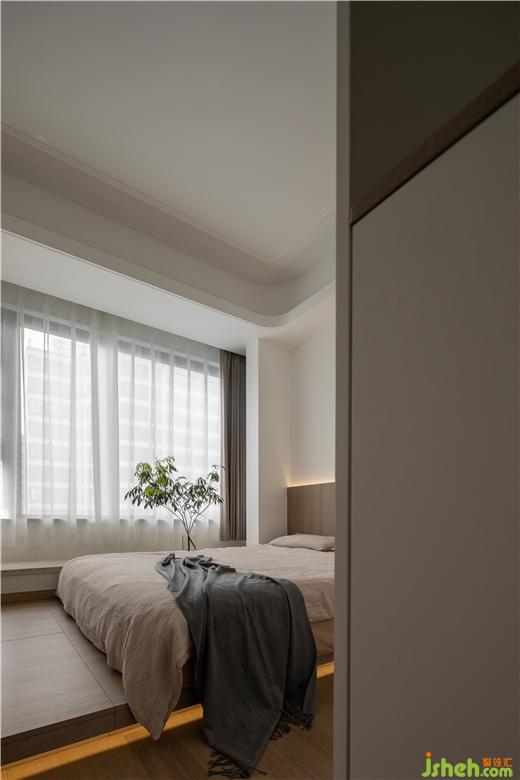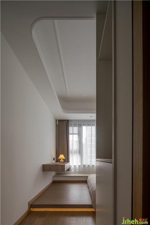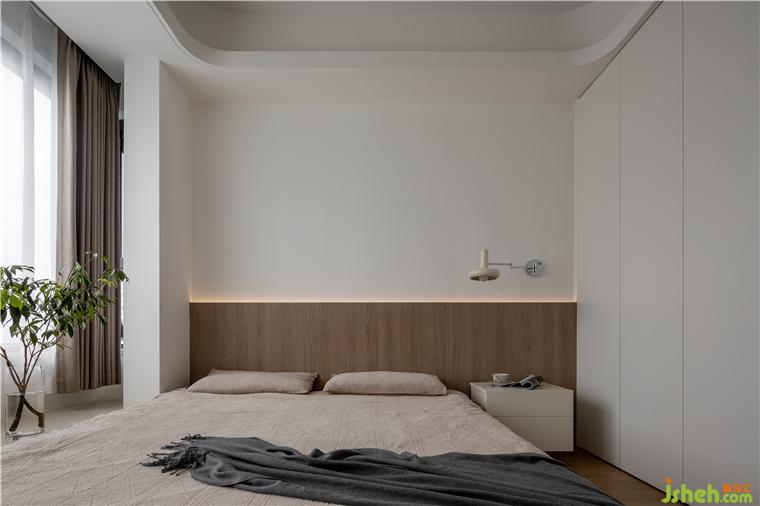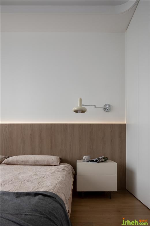 定制通頂衣柜,構(gòu)筑雙層地臺(tái),預(yù)留閱讀區(qū),促成L形動(dòng)線,方便起居生活。采用木板上墻的手法,為睡眠縈繞安穩(wěn)感,嵌入暖色燈帶,以光書(shū)寫(xiě)空間層次,整個(gè)臥室給人一種素雅無(wú)華、舒適無(wú)邊的感覺(jué)。
