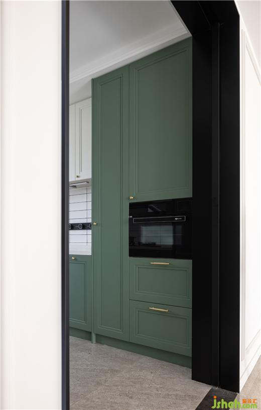 “喜歡敞亮的、能容納特別多家人一起做飯的廚房,真的很有家的感覺?!盪型布局廚房完美切割了各個(gè)功能區(qū),天鵝港豪宅設(shè)計(jì)讓空間變得合理有序。以白色挑動墨色與森綠,色塊間搭配的比例恰到好處——明朗,自如,又詮釋著法式的優(yōu)雅。