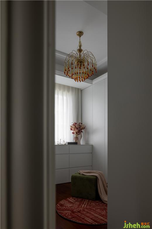 “藝術(shù)從來就不曾遠(yuǎn)離我們,它們不露聲色地待在生活的每一個(gè)角落。”衣帽間連貫的白色儲物柜,更顯得空間干凈整潔,天鵝港豪宅設(shè)計(jì)配合上紅色異形穿衣鏡,整個(gè)空間充滿了藝術(shù)氣息。專屬的燈光不僅是氛圍感的來源,更是個(gè)性與藝術(shù)的強(qiáng)烈表達(dá)。