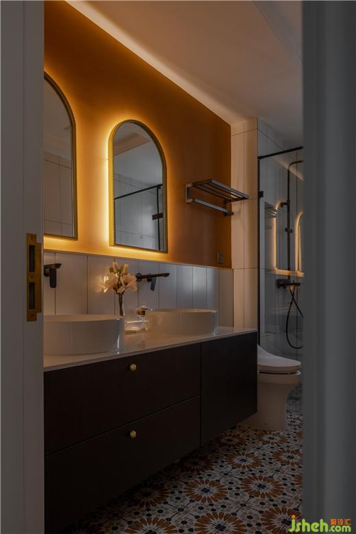 采用降低了明度的暖色,搭配經(jīng)典的黑白色調(diào),再以少量金屬元素逐漸拉升空間質(zhì)感。天鵝港豪宅設(shè)計(jì)精致繁復(fù)的花磚,在每一個(gè)小而私密的空間反復(fù)出現(xiàn)?;⌒未霸煨偷溺R子非常有特色,點(diǎn)綴隱形光帶,將優(yōu)雅和浪漫呼之欲出。