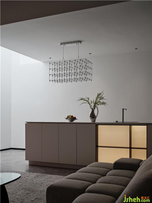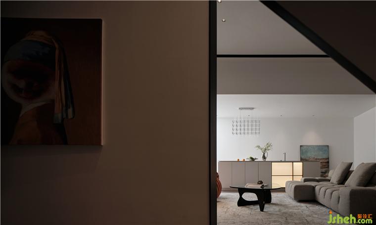鹽城私宅裝修設計提取純色的靜謐氣質(zhì),交融虛實概念,于光能的輔助下展露抽象藝術之趣,攜手飾面的寬窄形態(tài)與排布節(jié)奏,為水吧臺增添敘事性。纖細、輕盈、舒展的細節(jié)元素,匯入了優(yōu)雅氣息,將愜意與悠閑一一彰示。