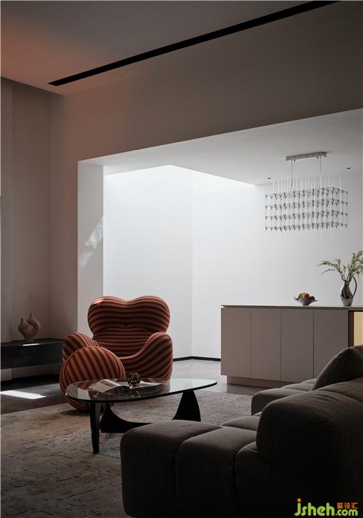 鹽城私宅裝修設計考慮天井采光的特性,沿結(jié)構線自然分區(qū),以剔透材質(zhì)引入鮮活光感,用點與線繪就開放式場域的美,形成“面對面和諧統(tǒng)一,體對體別致簡約”的視覺印象。置入經(jīng)典時尚的沙發(fā),樹立格調(diào),彰顯品味。